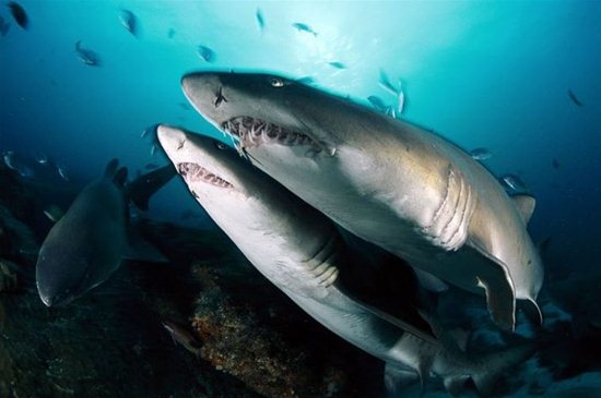 Держи пять! Аквалангист и акула на Багамских островах. (Фото Paul Spielvogel | CATERS NEWS)