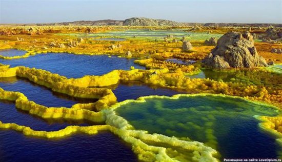 Вулкан Даллол — инопланетные пейзажи на Земле.