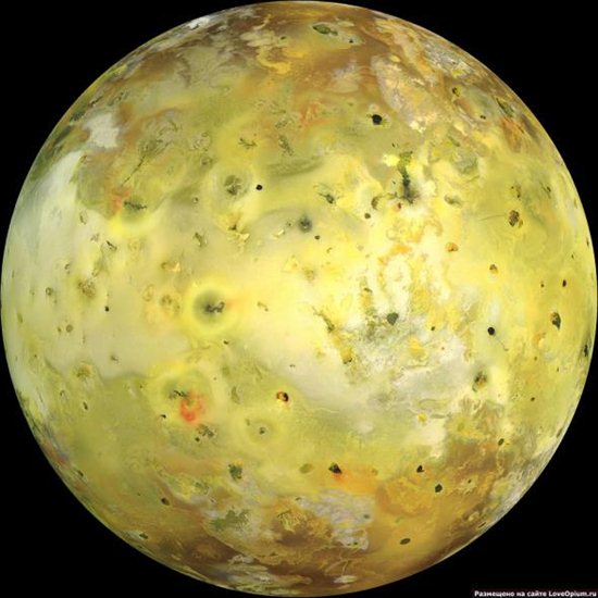 Благодаря чрезмерной вулканической активности, потокам лавы и соединениям серы, поверхность Ио окрашена в различные оттенки жёлтого, белого, красного и зеленого цветов