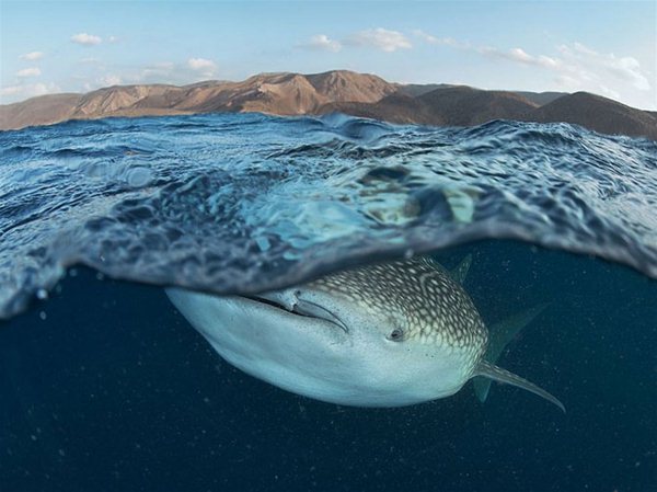Китовая акула, Африка. Это залив Таджура у восточных берегов Африки. Китовая акула является крупнейшей из современных рыб: ее размер часто превышает 10 метров.