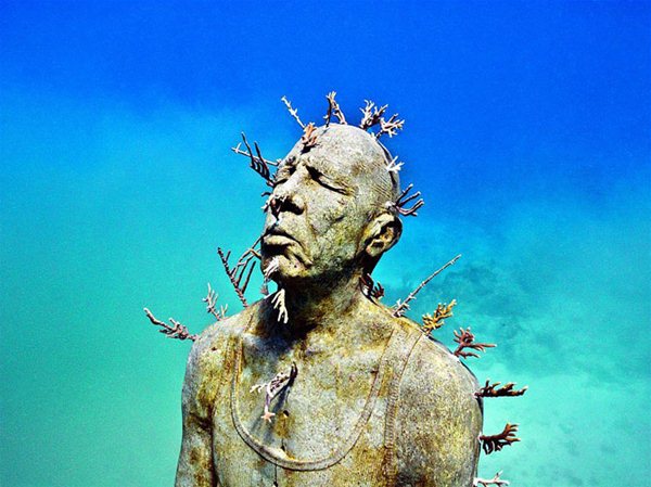 «Человек в огне». Возле мексиканского Канкуна ощетинившаяся кораллами статуя «Человек в огне» символизирует нашу недостаточную заботу об экологии.